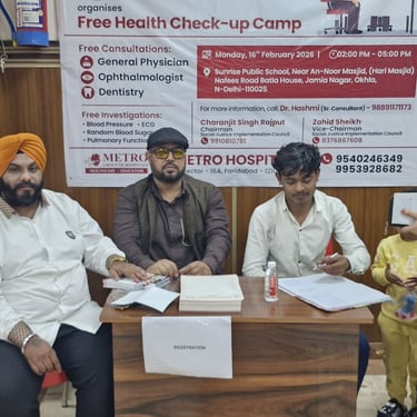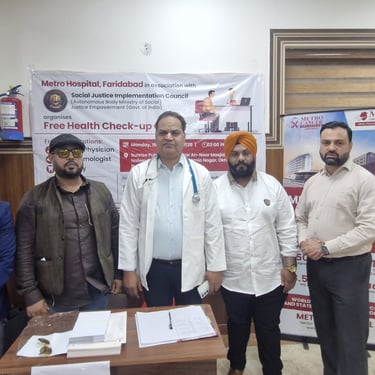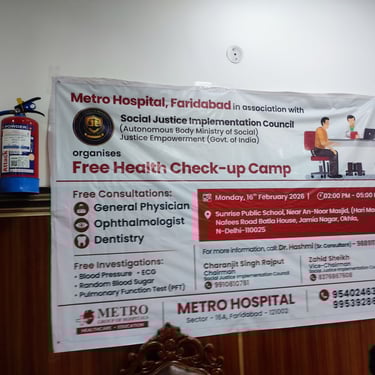 The Social Justice & Empowerment Implementation Council (SJIC) organized a healthcare camp in Jamia, Okhla in partnership with Metro Hospital, providing free medical check-ups, health awareness, and community healthcare support to local residents.