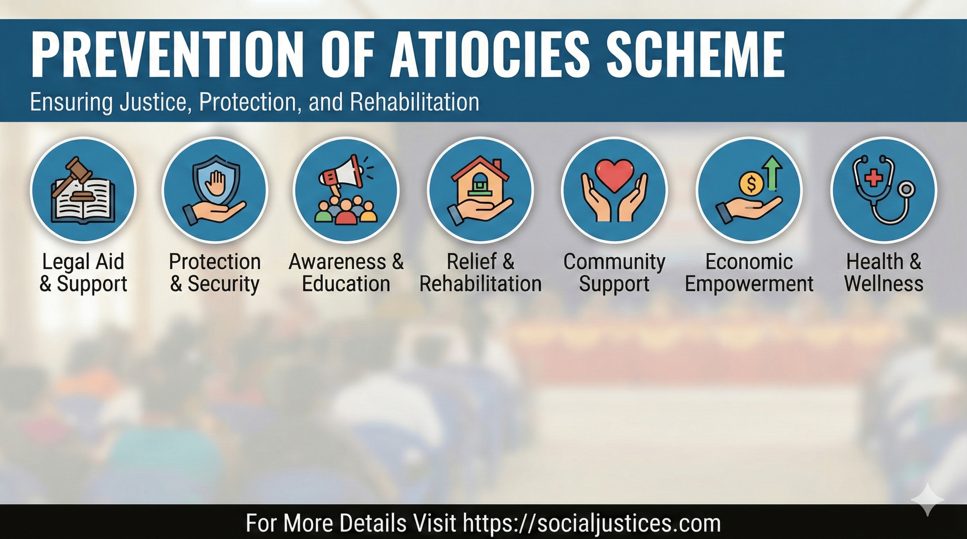 The Prevention of Atrocities Scheme is implemented to safeguard Scheduled Castes and Scheduled Tribes from discrimination, violence, and exploitation. It focuses on legal protection, relief, rehabilitation, and speedy justice for victims of atrocities. The scheme strengthens enforcement of the SC/ST (Prevention of Atrocities) Act by ensuring awareness, accountability, and access to justice at the grassroots level.